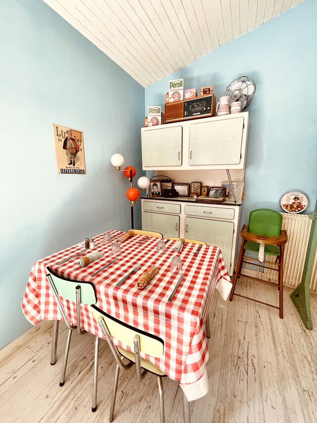Les meubles et la décoration sont d'époque 50's 60's et la cuisine est véritablement maison, élaborée chaque jour par le chef.